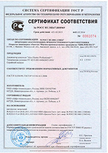 Сертификат на алкотестер "АлкоХантер Профессионал+"