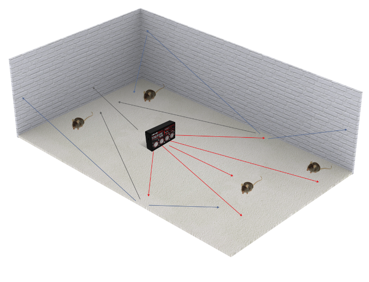 Уникальный ультразвуковой рисунок, генерируемый 4-мя излучателями, промодулирован низкой частотой. Вследствие этого ВОЗРАСТАЕТ ЭФФЕКТИВНОСТЬ ОТПУГИВАТЕЛЯ, т.к частота модуляции звуковых колебаний совпадает с частотой некоторых жизненно важных биоритмов грызунов и вызывает у них чувство тревоги, испуга и страха.