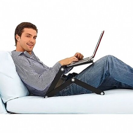 Удобная форма стола-трансформера для ноутбука позволяет легко подстоиться под ваше положение и с комфортом работать. В сложенном состоянии, столик почти не занимает места и его можно взять с собой куда угодно. Функциональная особенность складного столика не ограничена только лишь ноутбуком.